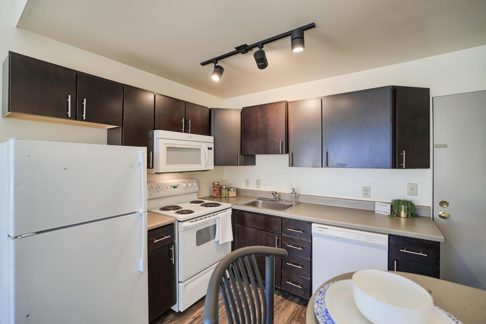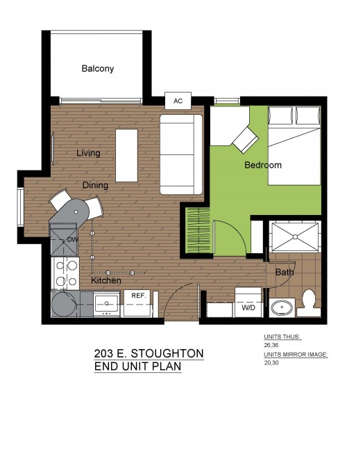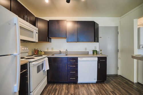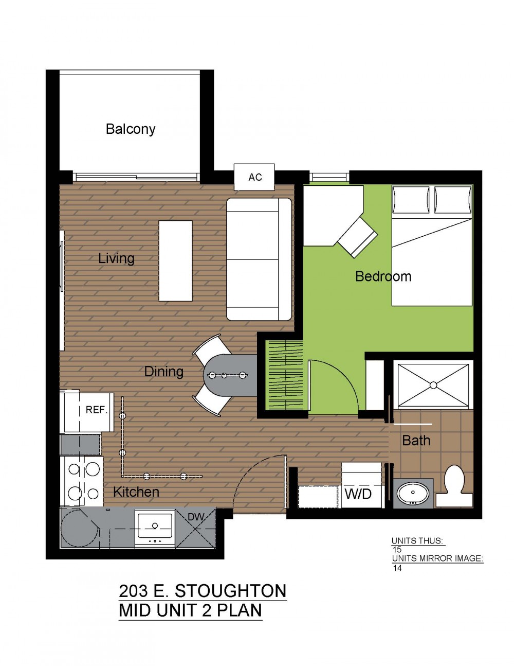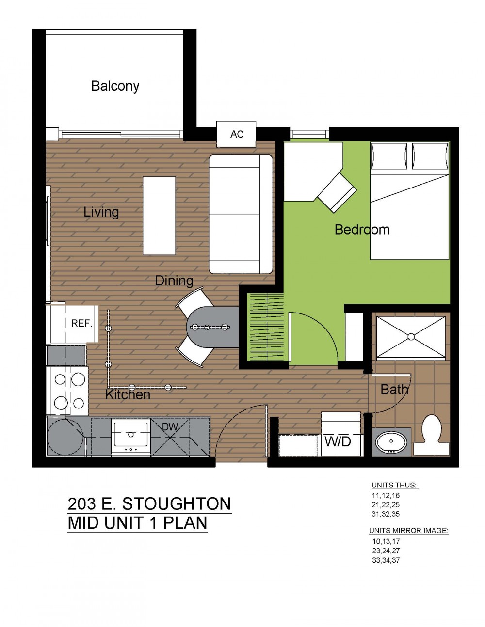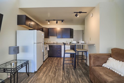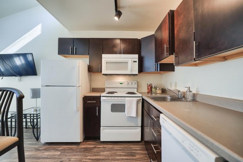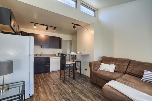 These fully furnished one bedroom apartments are located just blocks away from County Market. They feature an open living/dining area with plank flooring, an in-unit washer/dryer, and a flat screen TV. The third floor units also include vaulted ceilings with skylights.