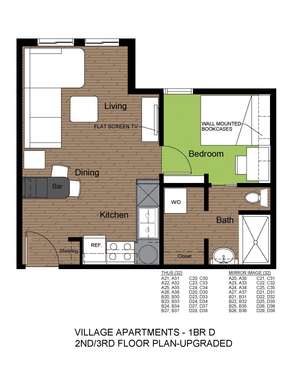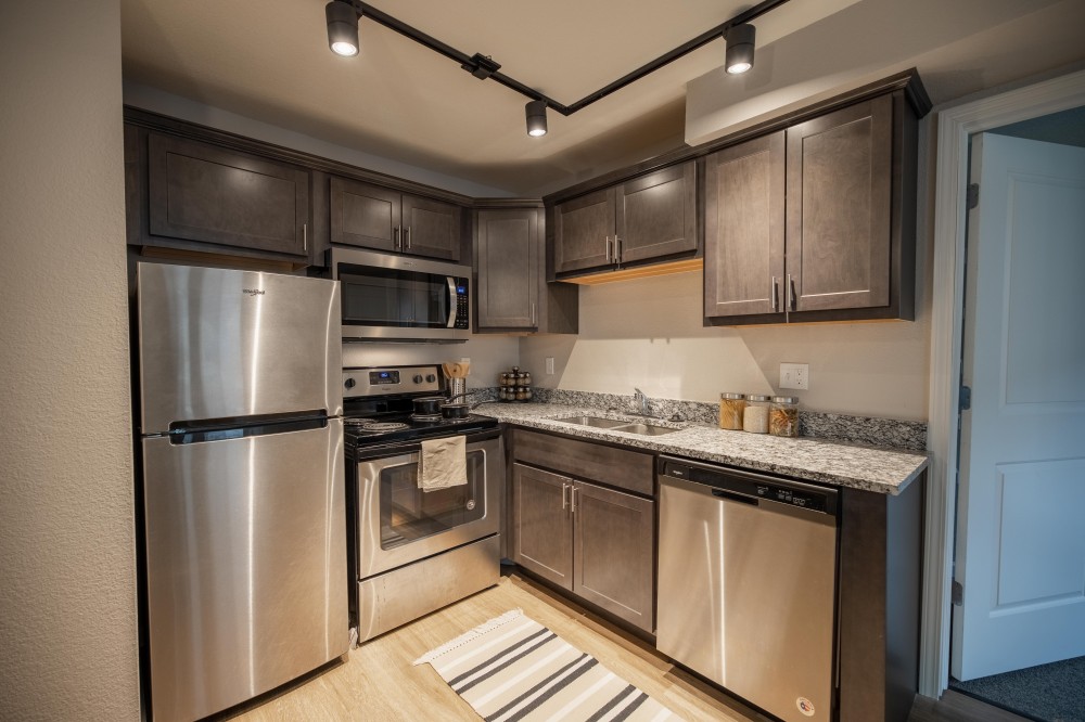 These completely upgraded one bedroom apartments feature plank flooring, granite countertops, stainless steel appliances, and track lighting. They are located near County Market and just blocks from the University of Illinois Engineering Quad. They provide an open living/dining area, Smart TV, in unit washer/dryer, and more!