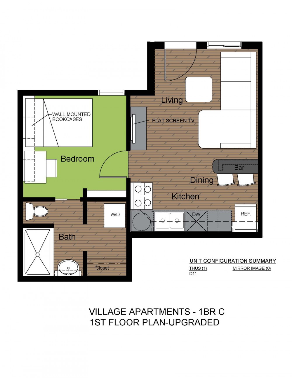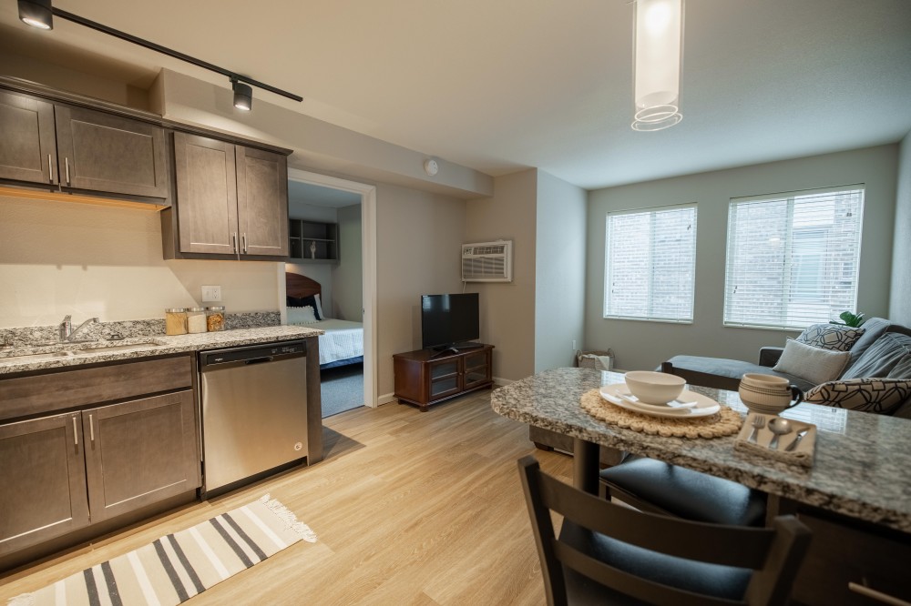 These completely upgraded one bedroom apartments feature plank flooring, granite countertops, stainless steel appliances, and track lighting. They are located near County Market and just blocks from the University of Illinois Engineering Quad. They provide an open living/dining area, Smart TV, in unit washer/dryer, and more!