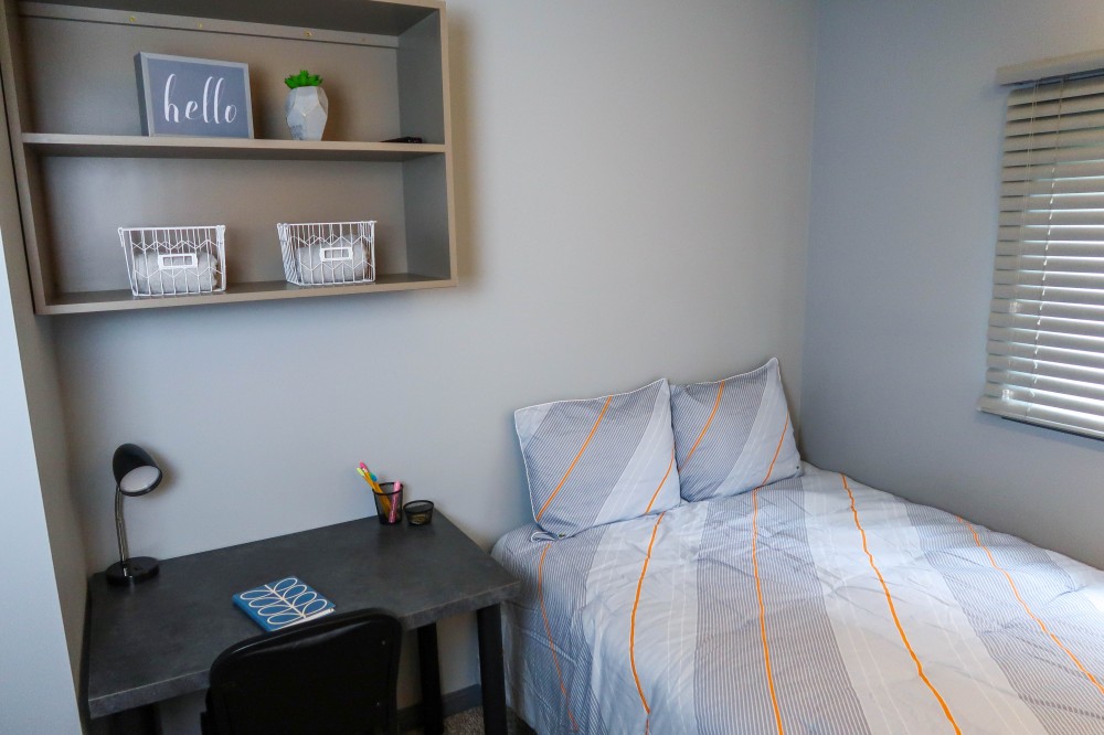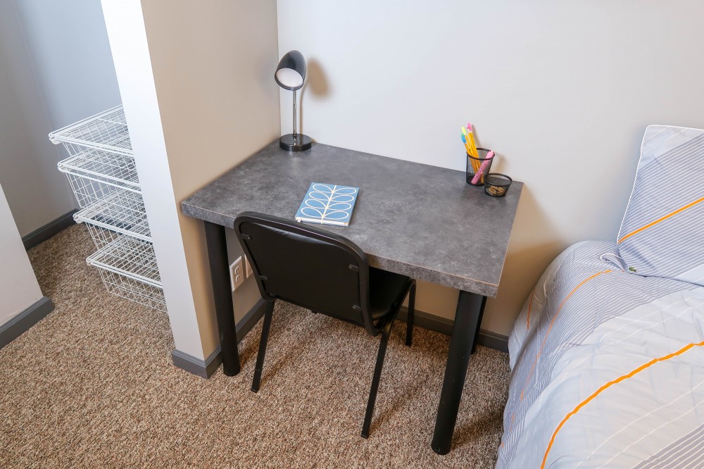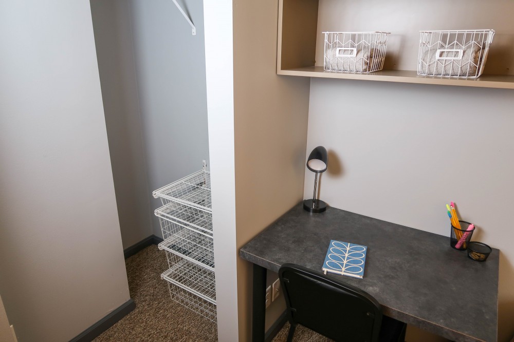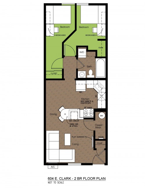 These upgraded two bedroom apartments feature granite countertops, a beverage cooler, 3 Smart TVs, and plank flooring. They are located near the University of Illinois Engineering Quad and just blocks from County Market.