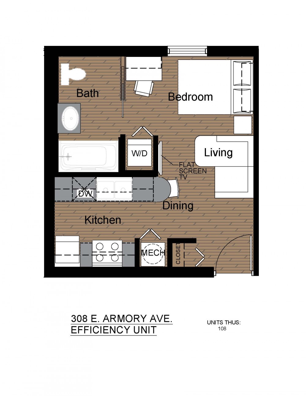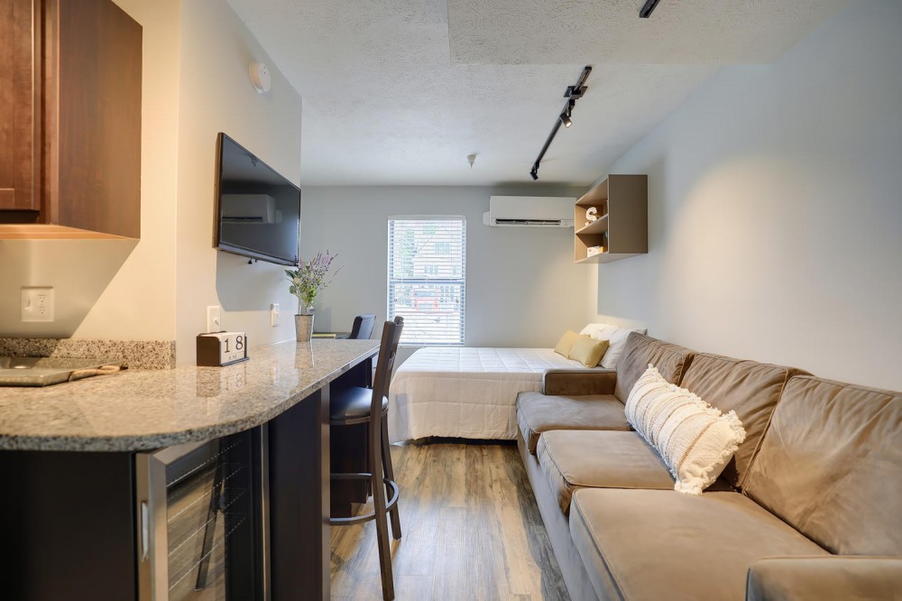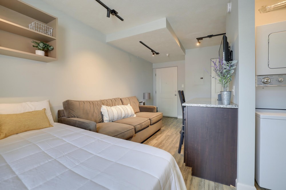 These completely upgraded studio apartments are in a great location just a block from the Armory and close to the University of Illiinois Main Quad. They feature plank flooring, granite countertops, stainless steel appliances, a flat screen TV, in-unit washer/dryer and more!