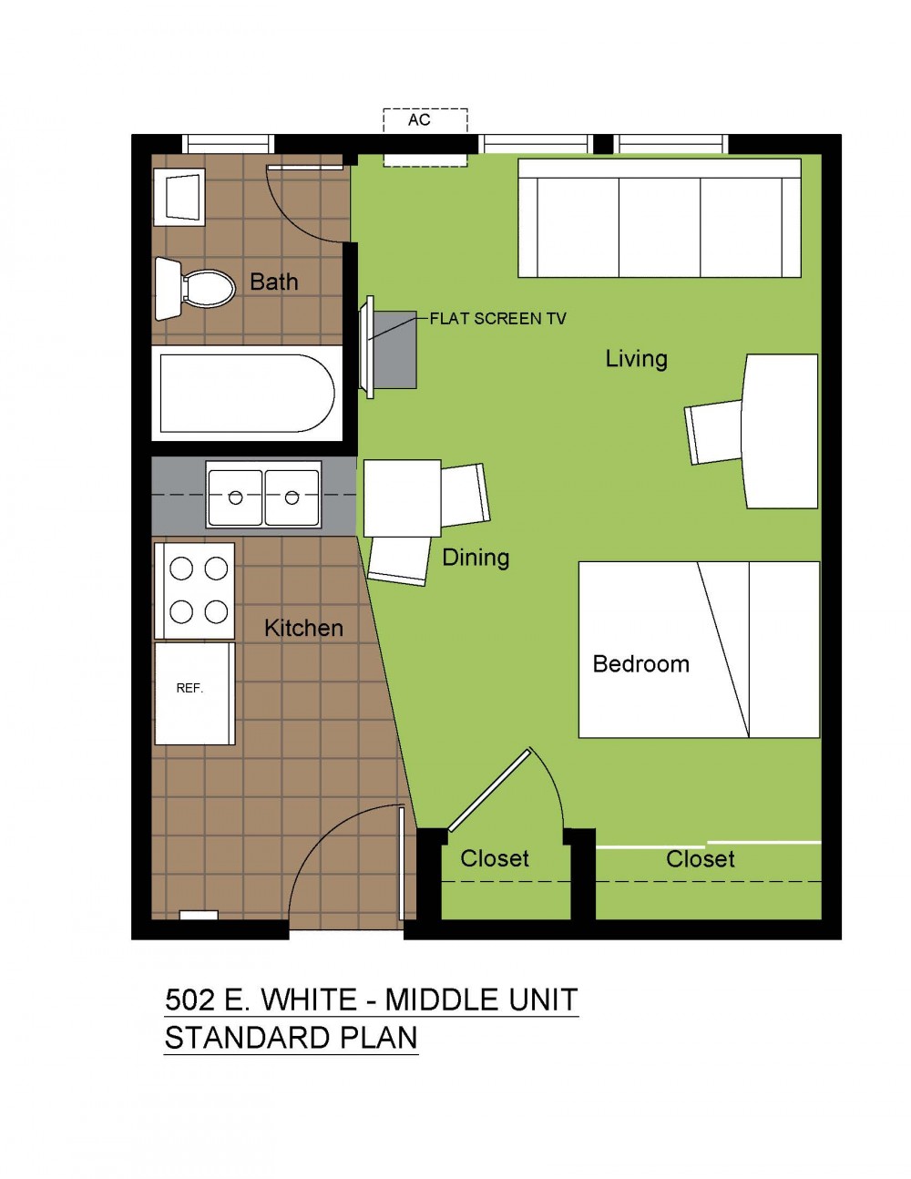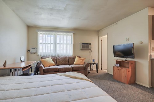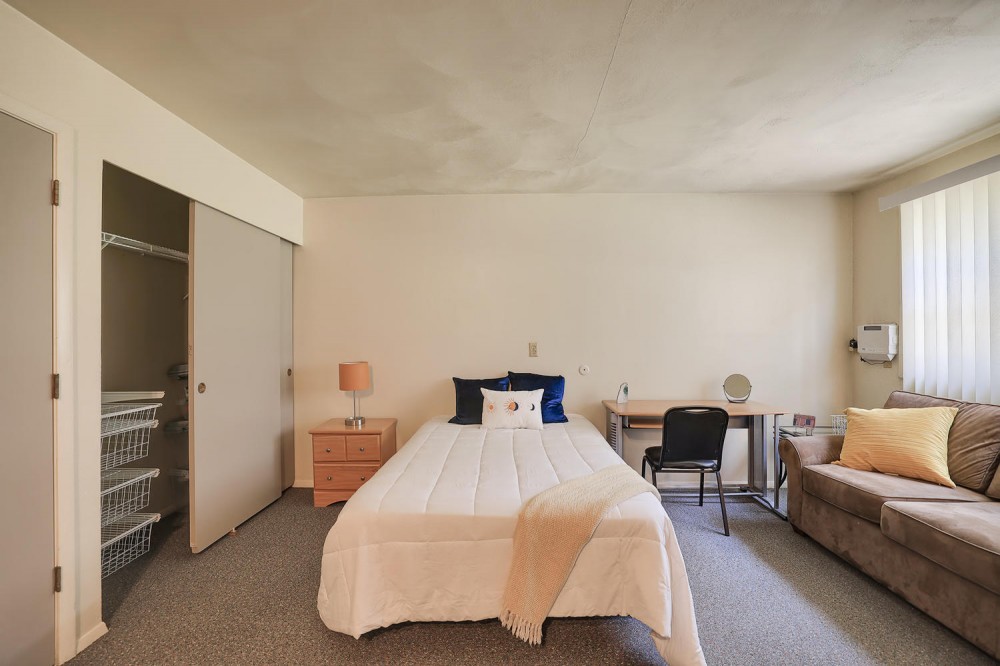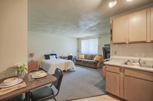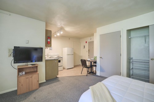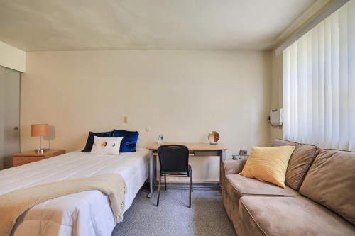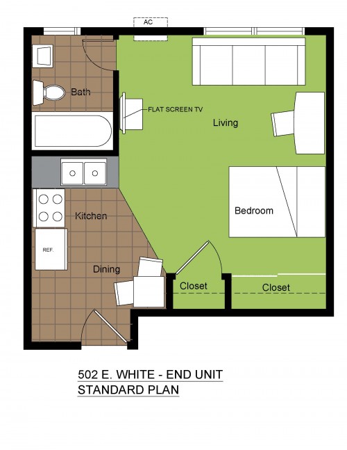 These fully furnished studio apartments feature a large living/bedroom area, a full bathroom, flat screen TV, and ample storage space. They are located close to the University of Illinois Engineering Quad and just blocks from County Market.