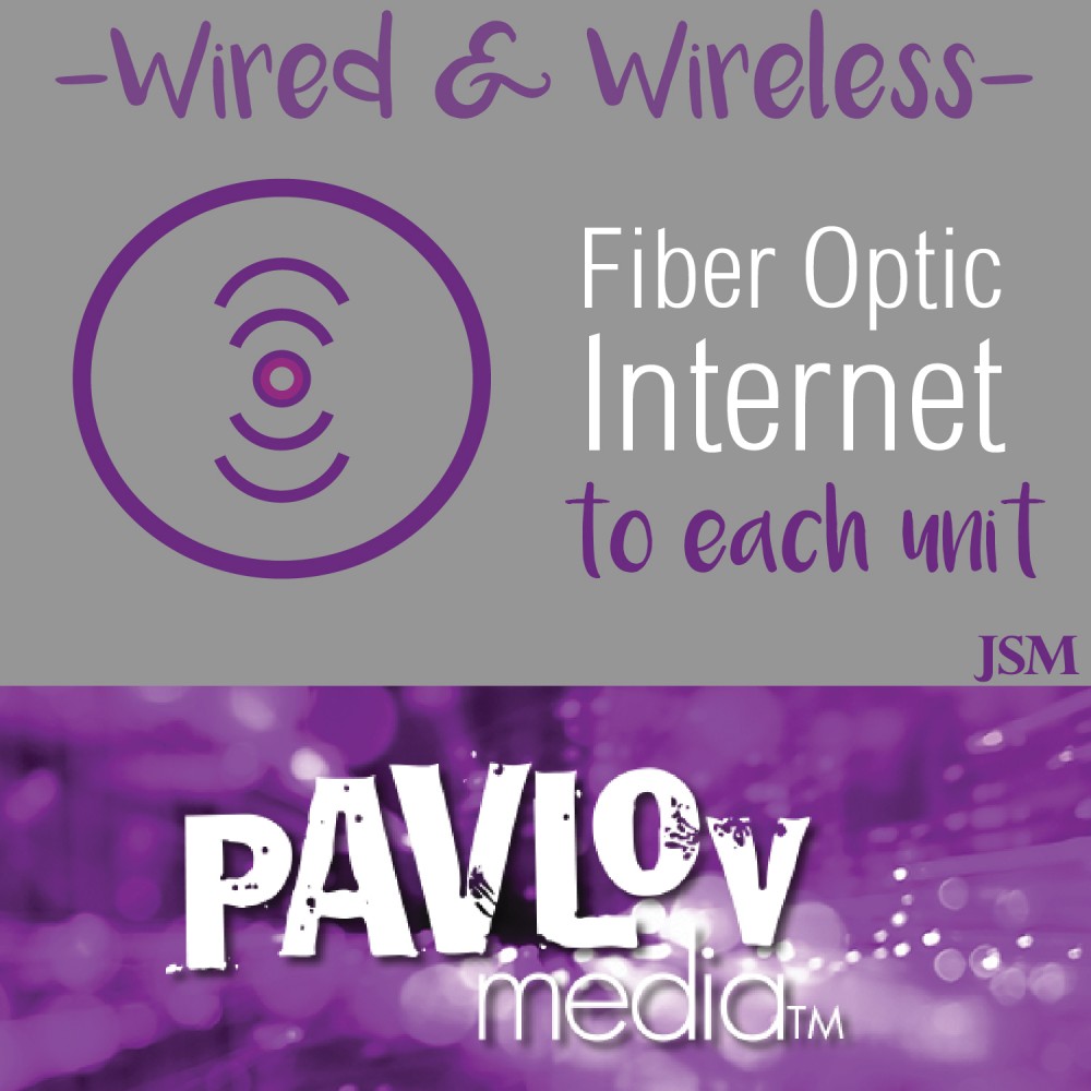 NEW Wired and Wireless Pavlov Internet! Super reliable 1G fiber optic connection to each unit! The Pavlov provided device offers multiple jacks for wired internet access, plus it will provide Wi-Fi! No need to purchase a wireless router!