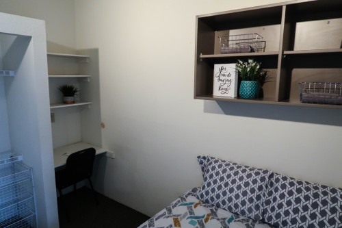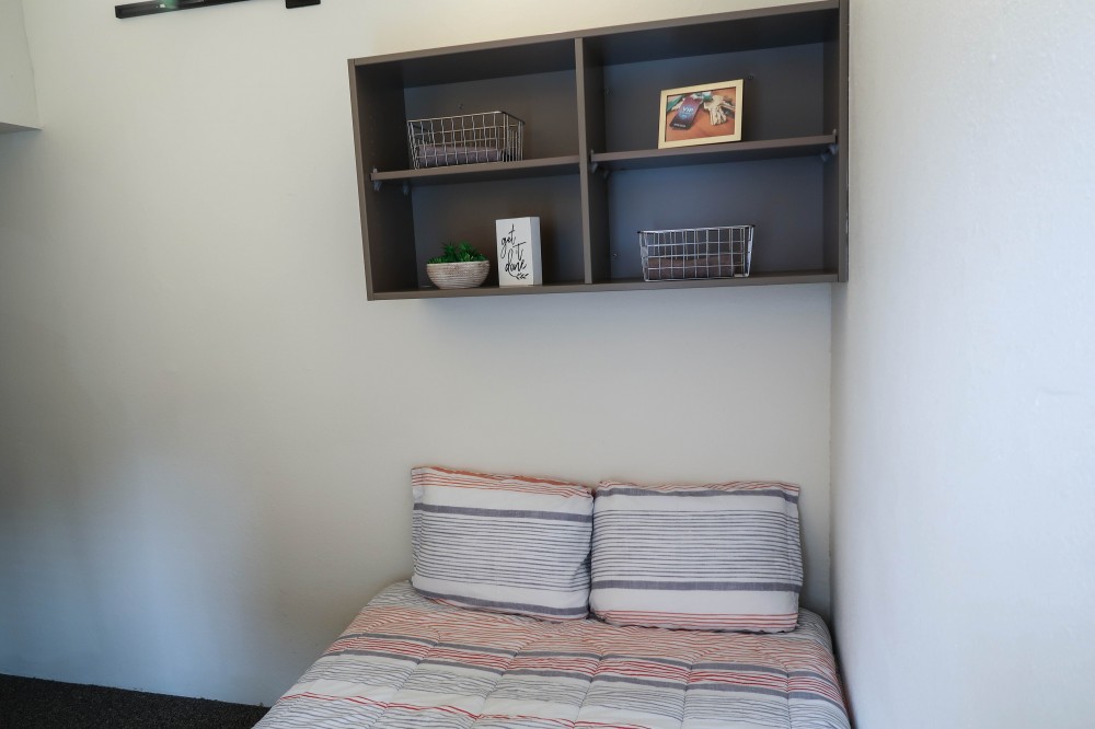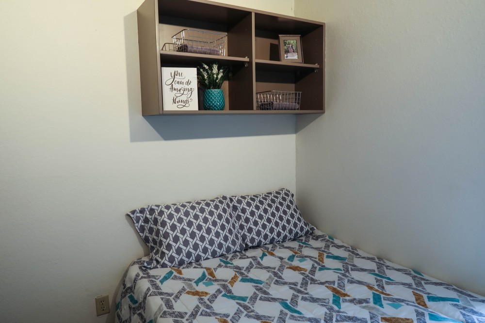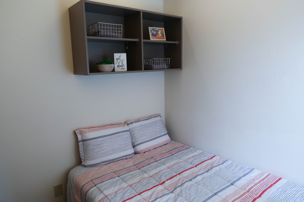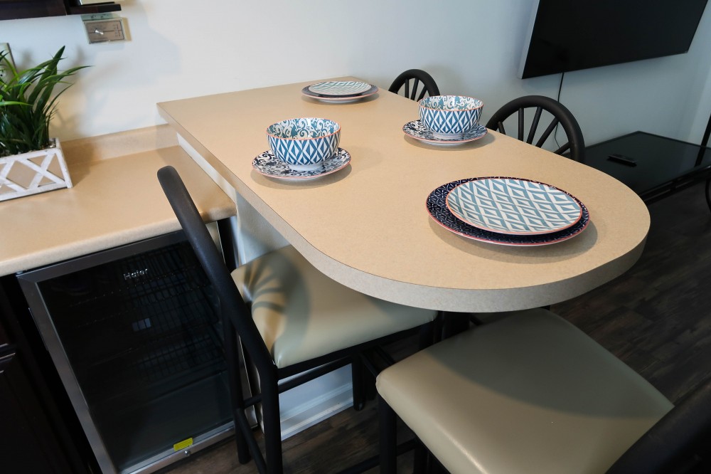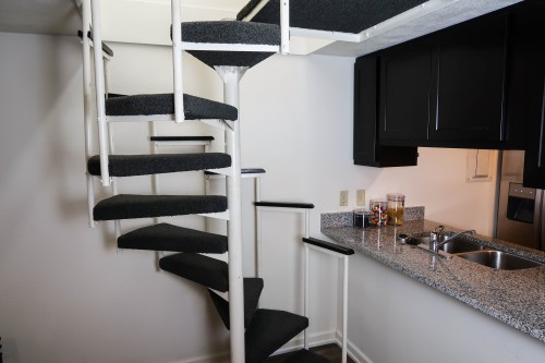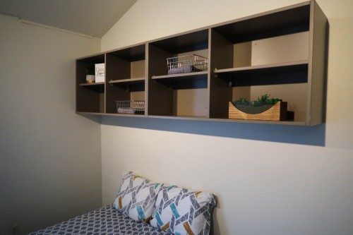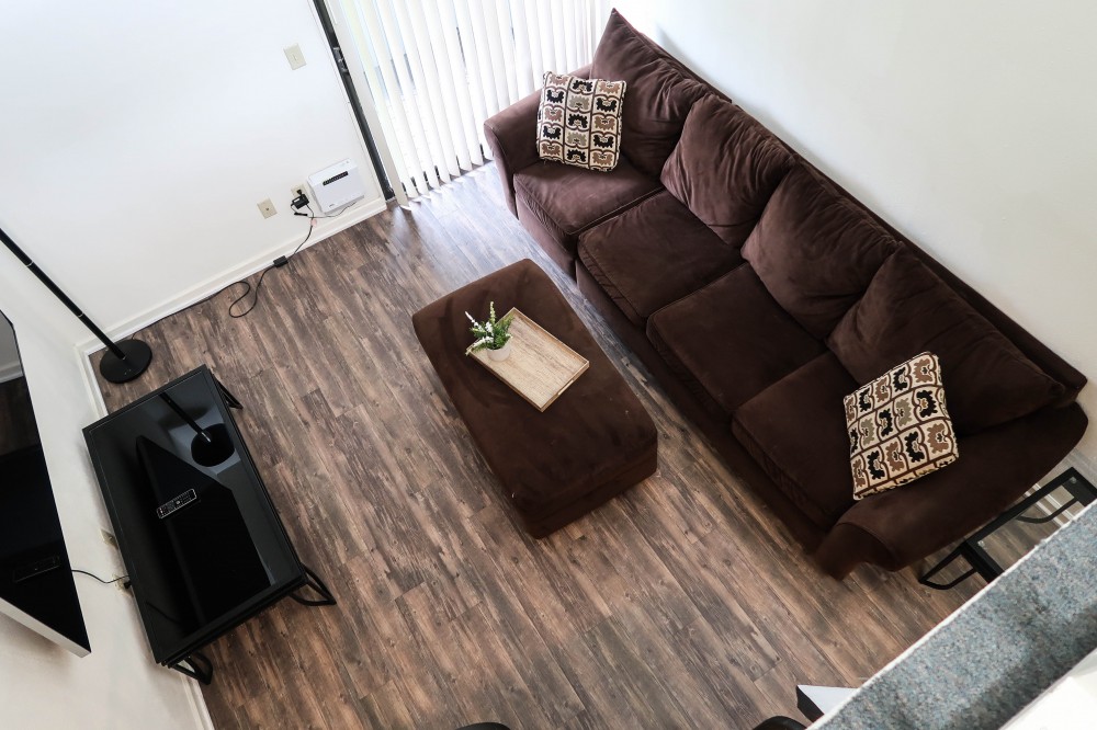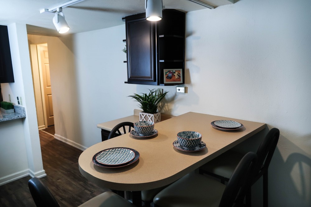 These completely upgraded four bedroom/two bathroom apartments feature granite countertops, plank flooring, stainless steel appliances, and a 70" Smart TV. They include an in-unit washer/dryer, dishwasher, wall-mounted bookshelves, and a beverage chiller. They are located in a quiet neighborhood just blocks from County Market.